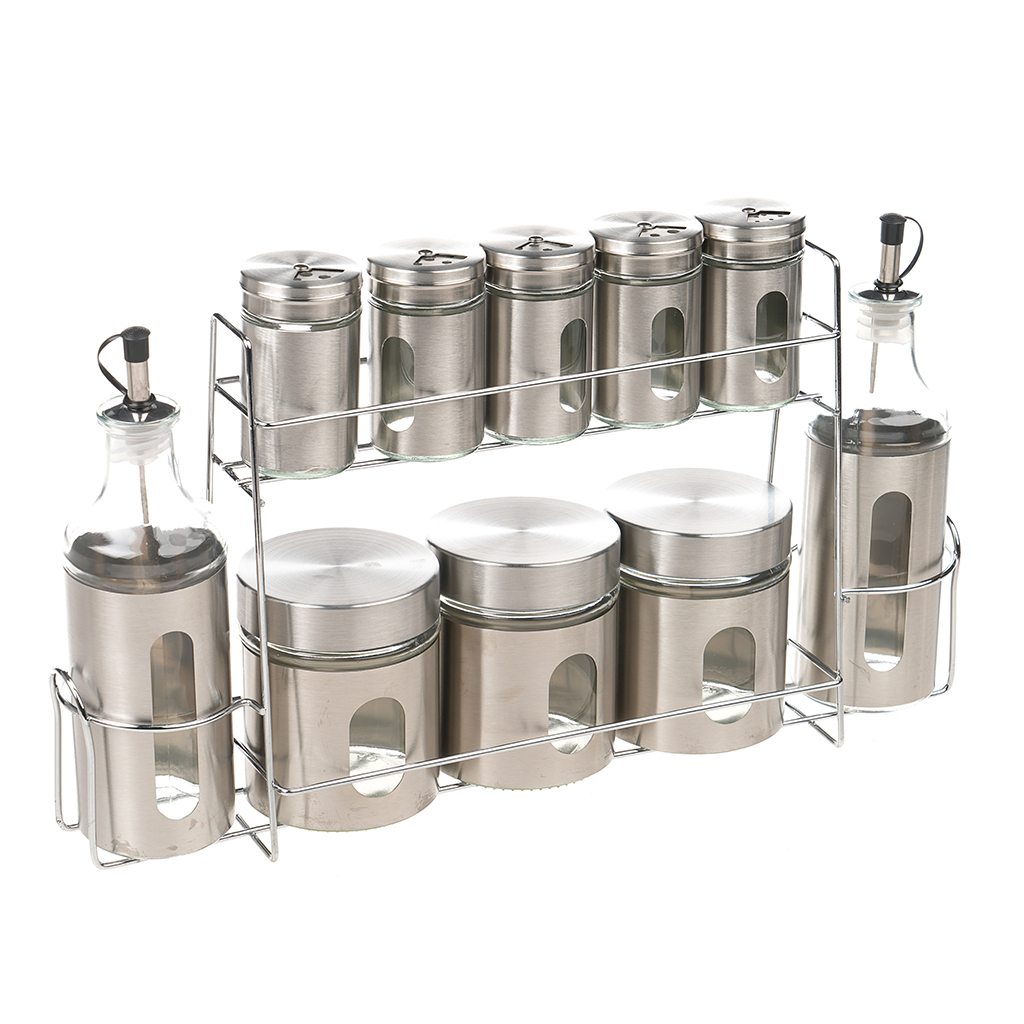 Brand: other Type: Spice set Color: silver Material: glass Number of Pieces: 11 Pieces This spice set features a sleek, modern design that adds a stylish touch to your kitchen. The set includes airtight containers that keep your spices fresh for as long as possible Made from high-quality materials, it is easy to use and clean, making it perfect for everyday use