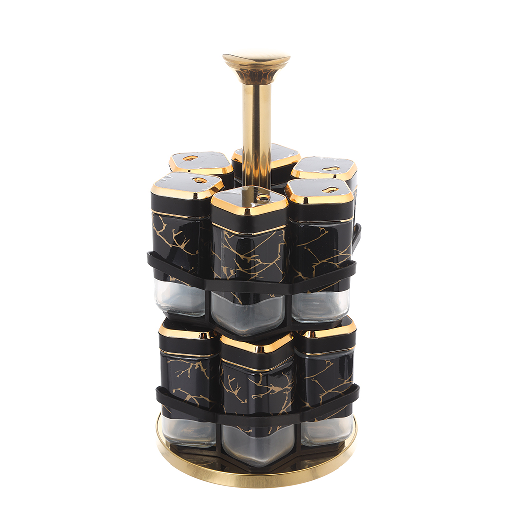 Glass Spice Set, 12 Pieces - Black Gold | Almorshedy Marts