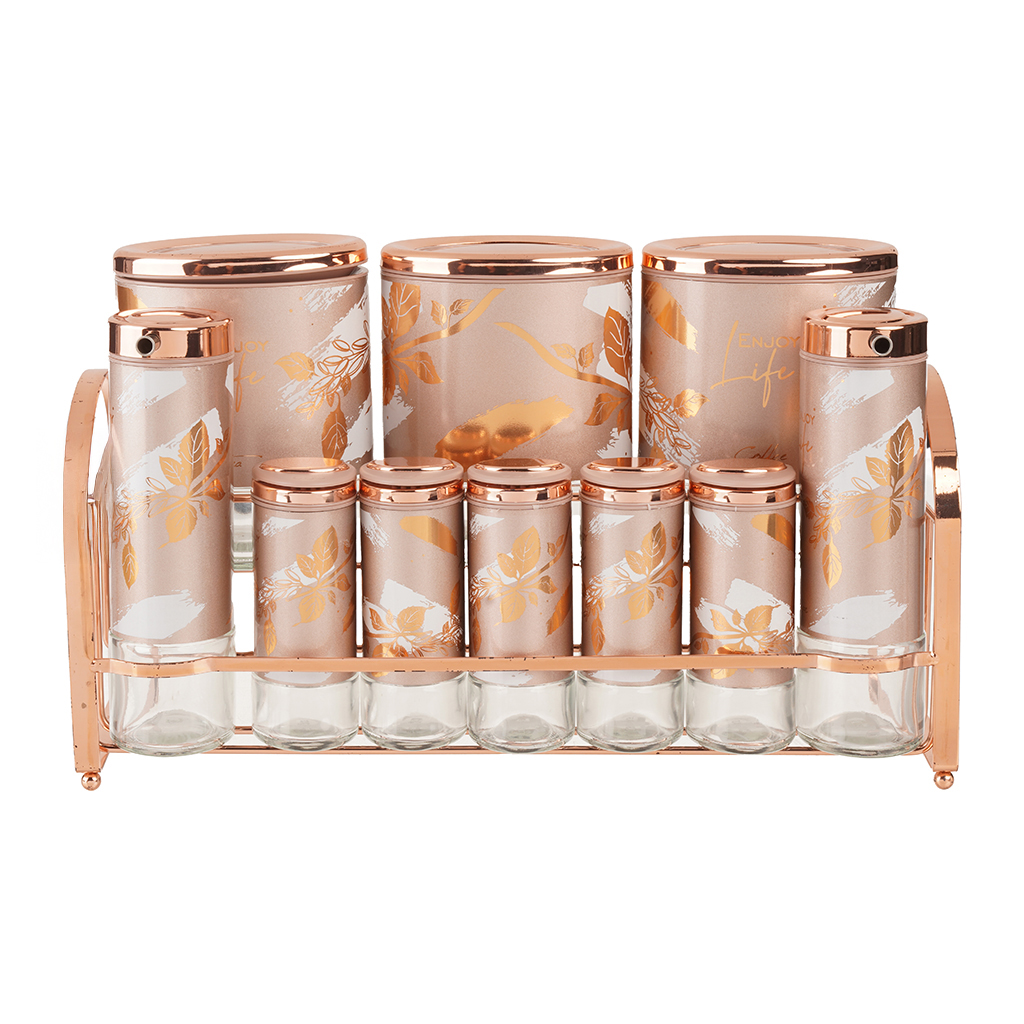 Oxford Glass Spice Jar Set, 11 Pieces - Rose Gold | Almorshedy Marts