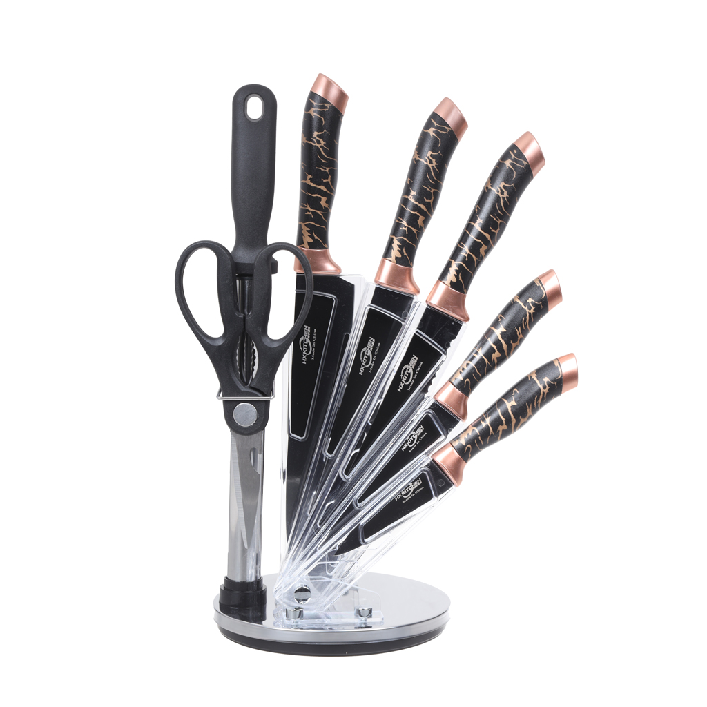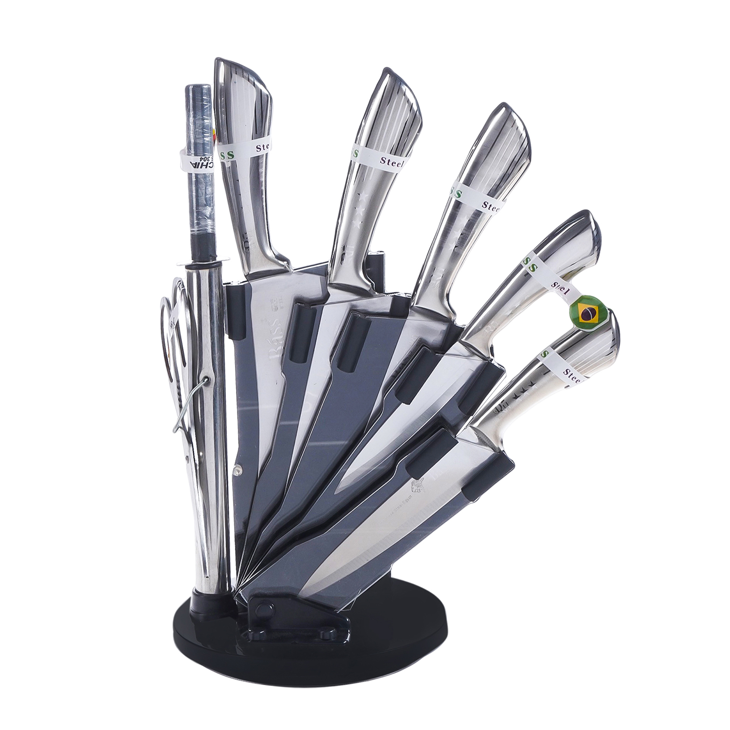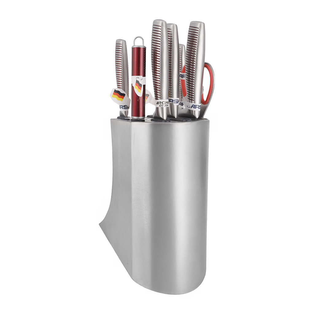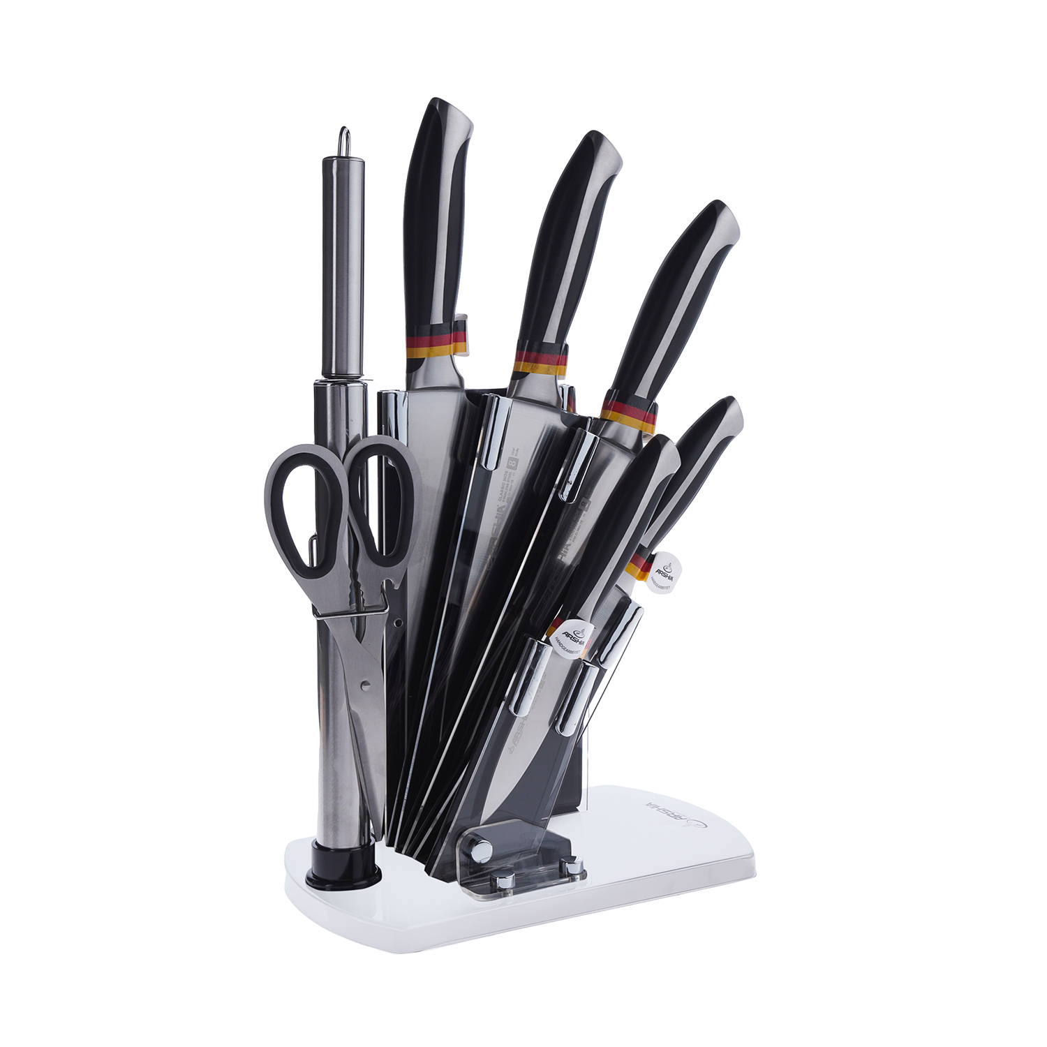 Arsha Stainless Steel Knives Set, 8 Pieces With Stand - Silver Black