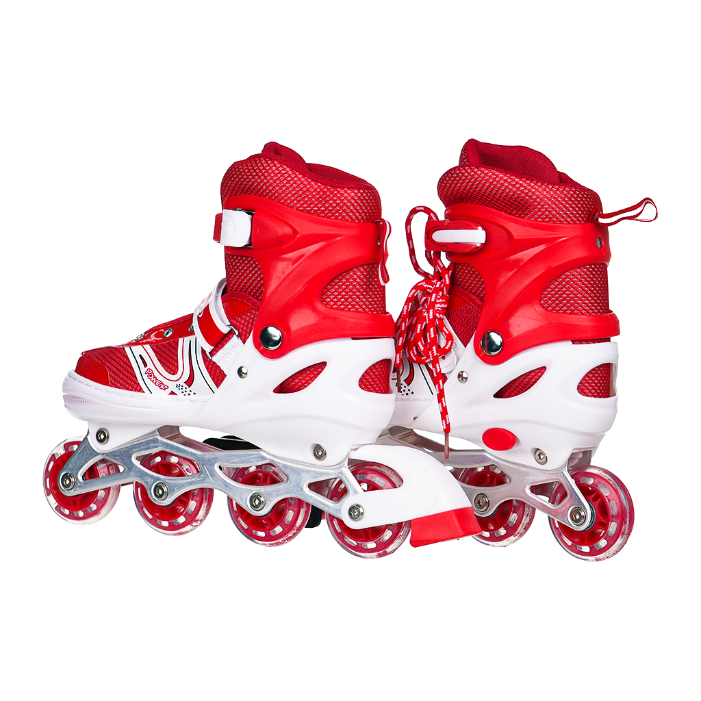 Brand: Other Type: Sports Roller Skate Shoes 4 Illuminating Wheels Size : M (35-38 ) Color: Red Material: Mixed Recommended age: 5 Years & above Target Gender: Kids About : Skating shoes is a recreational skate for unisex. Material Details : Plastic shoe case Net cloth Aluminum The secure closure system combined with a monocoque frame lowers the center of gravity, providing better balance. Skates have 3 different Unisex size Small (31-34), Meduim (35-38), Large (39-42), and each size is adjustable IT can be upgraded to a higher-performance wheel as skater proficiency increases. For casual skaters looking at an entry-level skate, It is a smart choice. Roller Skating Shoes, The Roller Skates can give you exciting playtime. These roller skates are made from high-quality plastic that ensures durable use. They have striking prints on surfaces that adds an attractive appearance. The shoes have a safe design that can be used for secure riding. Adjustable chassis up to 3 sizes with a simple press of button will give you years of use. Durable frame for long lasting performance Belt system makes getting on and off the skids very easy and effortlessly. Comfortable Wear, The Skates have pads that keep your toes safe inside. Super comfortable inner lining keeps your feet comfortable and secure Molded ankle support Premium inner lining washable. Stylish Appearance, The Adjustable Skating Shoes have a sporty look to add visual appeal. These roller skates can be worn using laces or Velcro straps to keep them in place. Durable Construction, The Skating Shoes are built using high-quality materials, plastic, rubber, and aluminum for sturdiness. Warning: Choose a product that fitted to you, and check carefully if snail, rivet and boot are stable before playing. Children age under 5 should play under the supervisor of adult. When skating always remember to wear the protective equipments: Helmet, Wrist guards, Knee and elbow pads. Avoid skating on watery, only ang bumpy places. Should play in safe and legal place. Avoid playing in crowd or playing at night. Avoid improper doing such as: Stop rapidly, too fast when turn the direction, And first learner should start playing under the guide of professional.