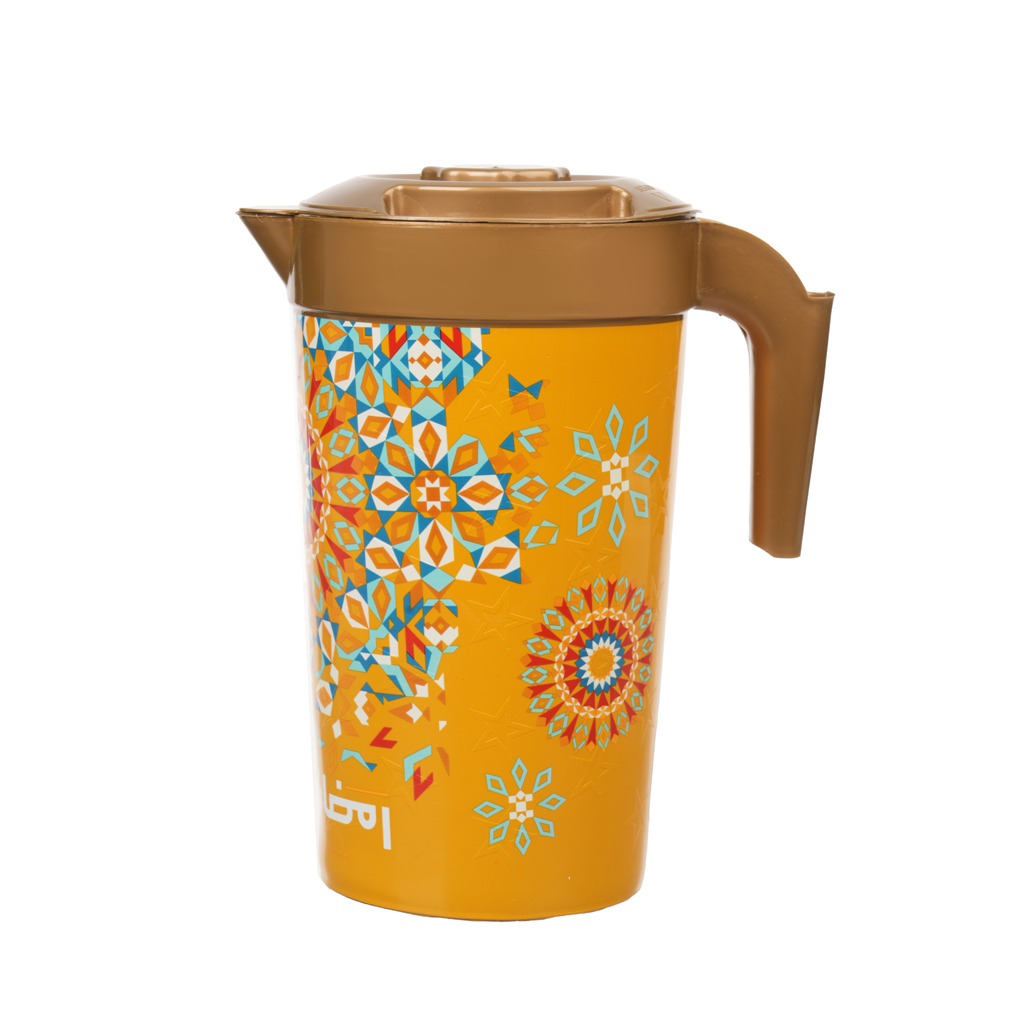 Brand: Max Plast Type: Ramadan-themed Jug for water and juices Color: Yellow Number of pieces: 1 pieces Size: 1.50 Liter Material: Plastic Made of high-quality plastic Suitable for water, juices, and cold beverages Lightweight and easy to carry Easy to clean Food-safe material