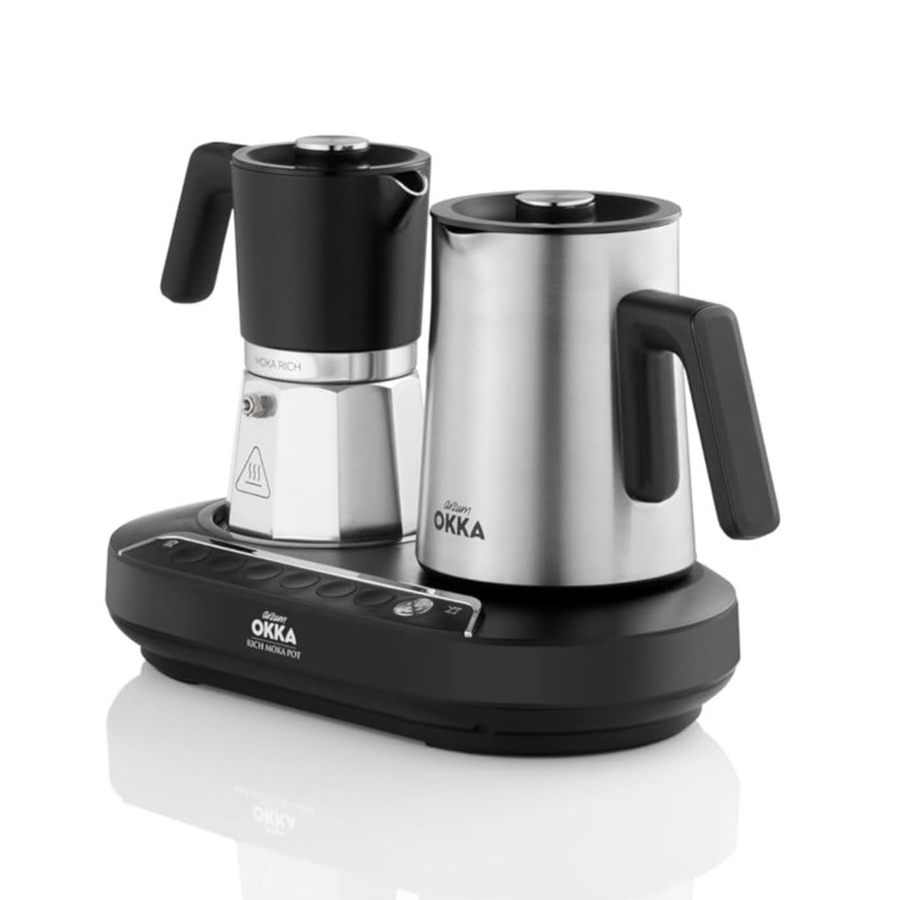 Arzum Okka OK0027 Coffee Machine With Mocha Pot, 3 Cups , 480 Watt - Silver Black