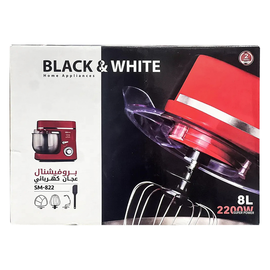 Black&White Professional SM-513 Electric Stand Mixer, 2200 Watt, 8 Liter, 6 Speeds - Red