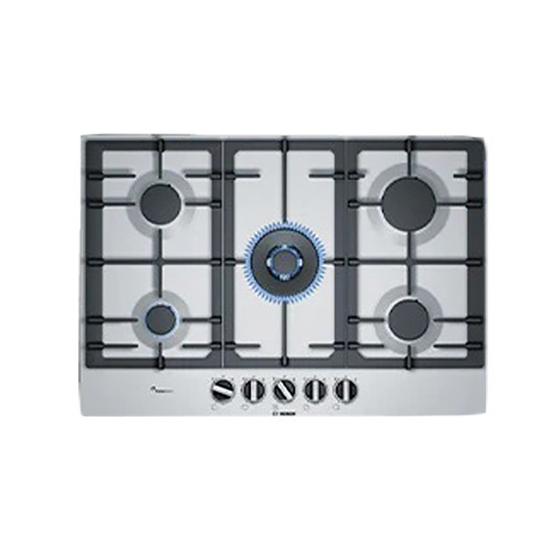Bosch Series 6 PCQ7A5B90 Built-in Gas Cooker, 5 Burners - Silver With Bosch Series 4 DWK96PJ60T Built-in Wall Hood, 90 cm - Black With Bosch Series 4 HBJ534ES0 Built-in Electric Oven, 60x60 cm - Silver Black