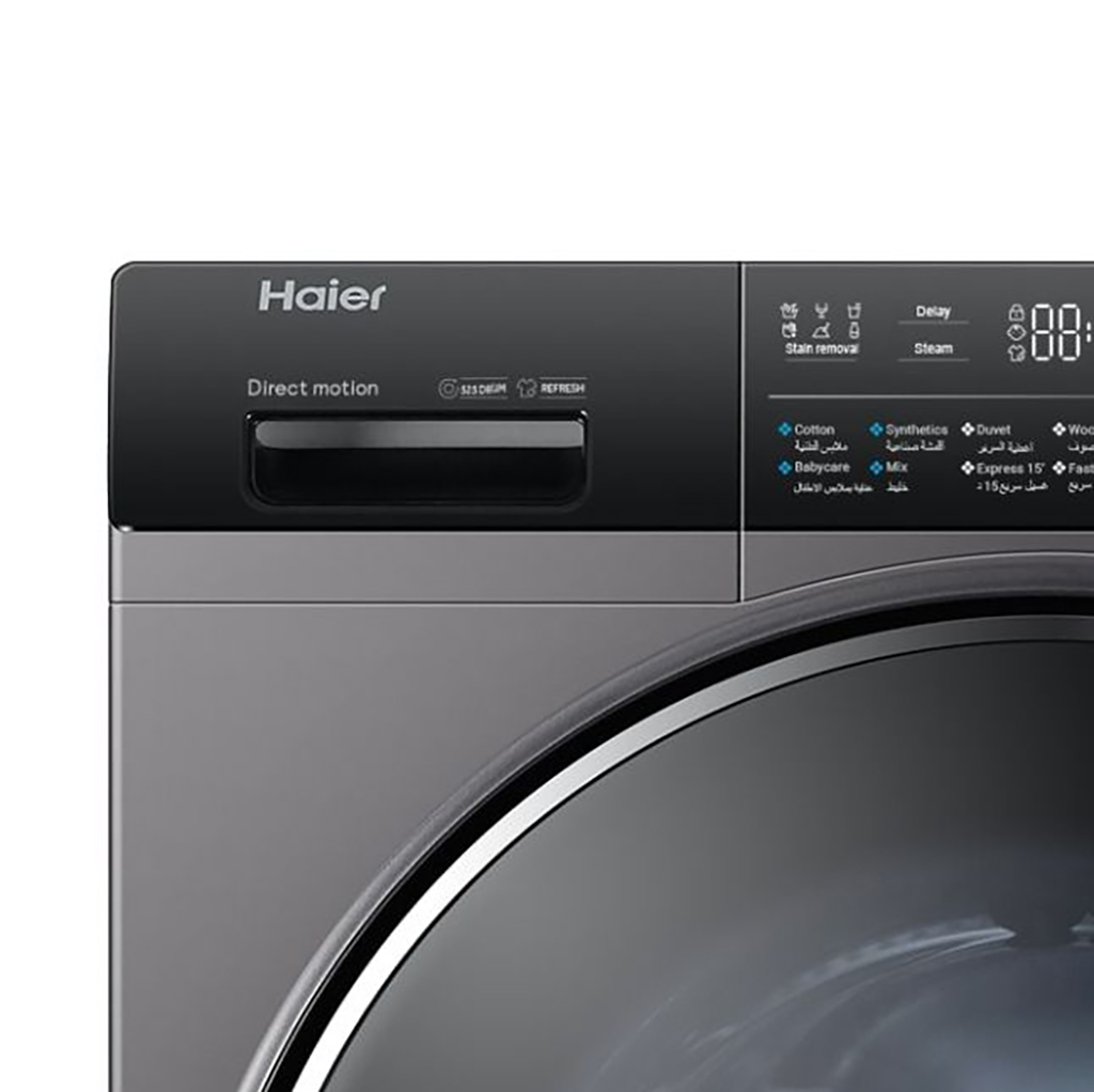 Haier HW100-B14979S8 Fully Automatic Washing Machine, 10.5 kg, Inverter, Digital, Front Load - Silver