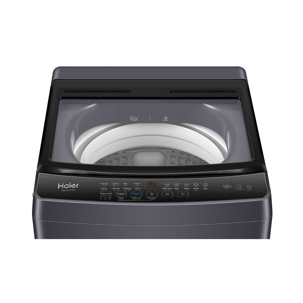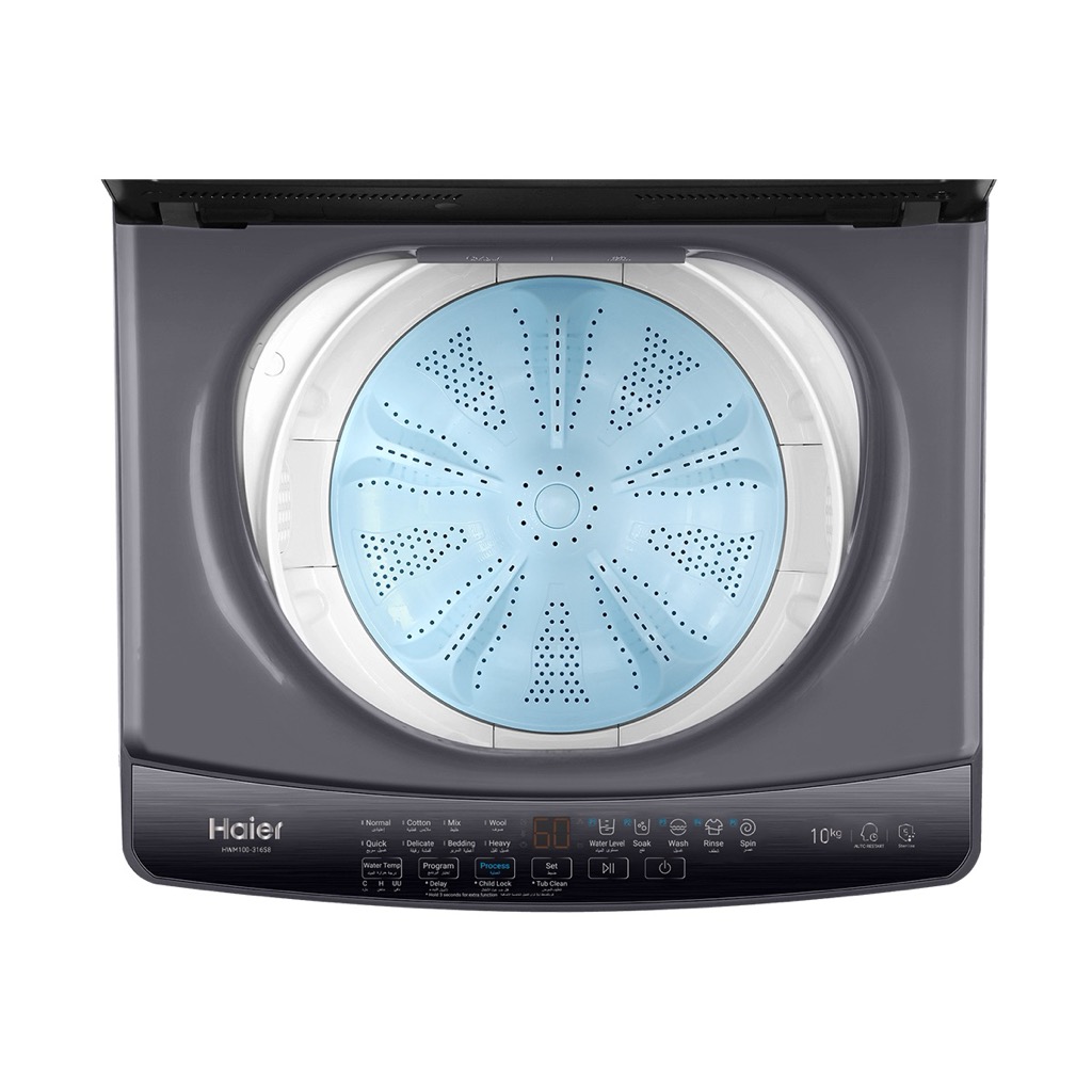 Haier HWM100-316S8 Fully Automatic Washing Machine, 10 kg, Inverter, Digital, Top Load - Dark Silver