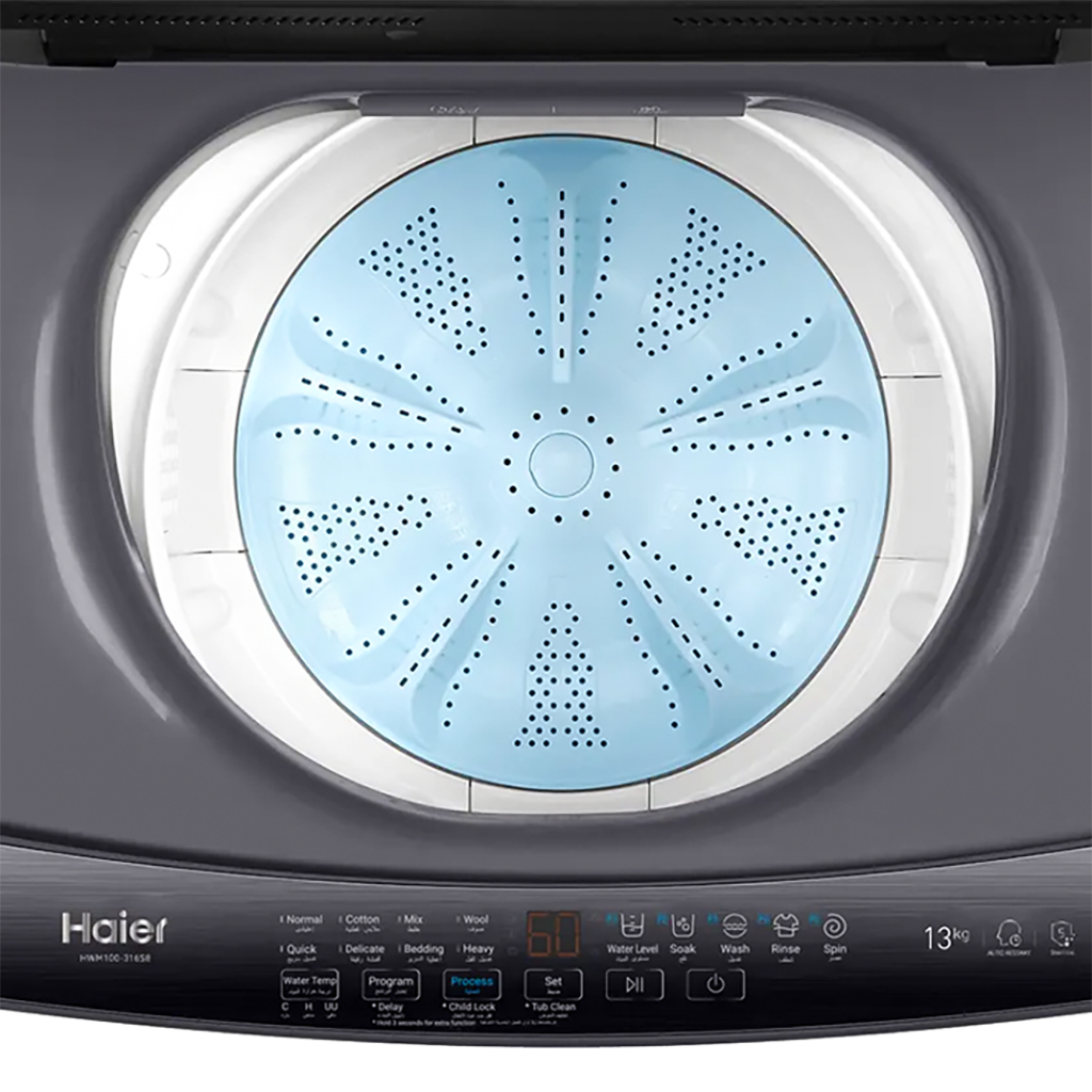 Haier HWM130-316S8 Automatic Washing Machine, 13 kg, Digital, Top Load - Grey