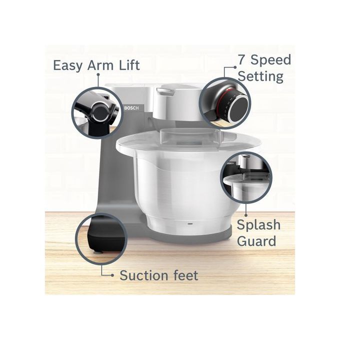 Bosch MUMS2VM00 Electric Kneading Machines, 900 Watt, 3.8 Liter, 7 Speeds - Black Silver