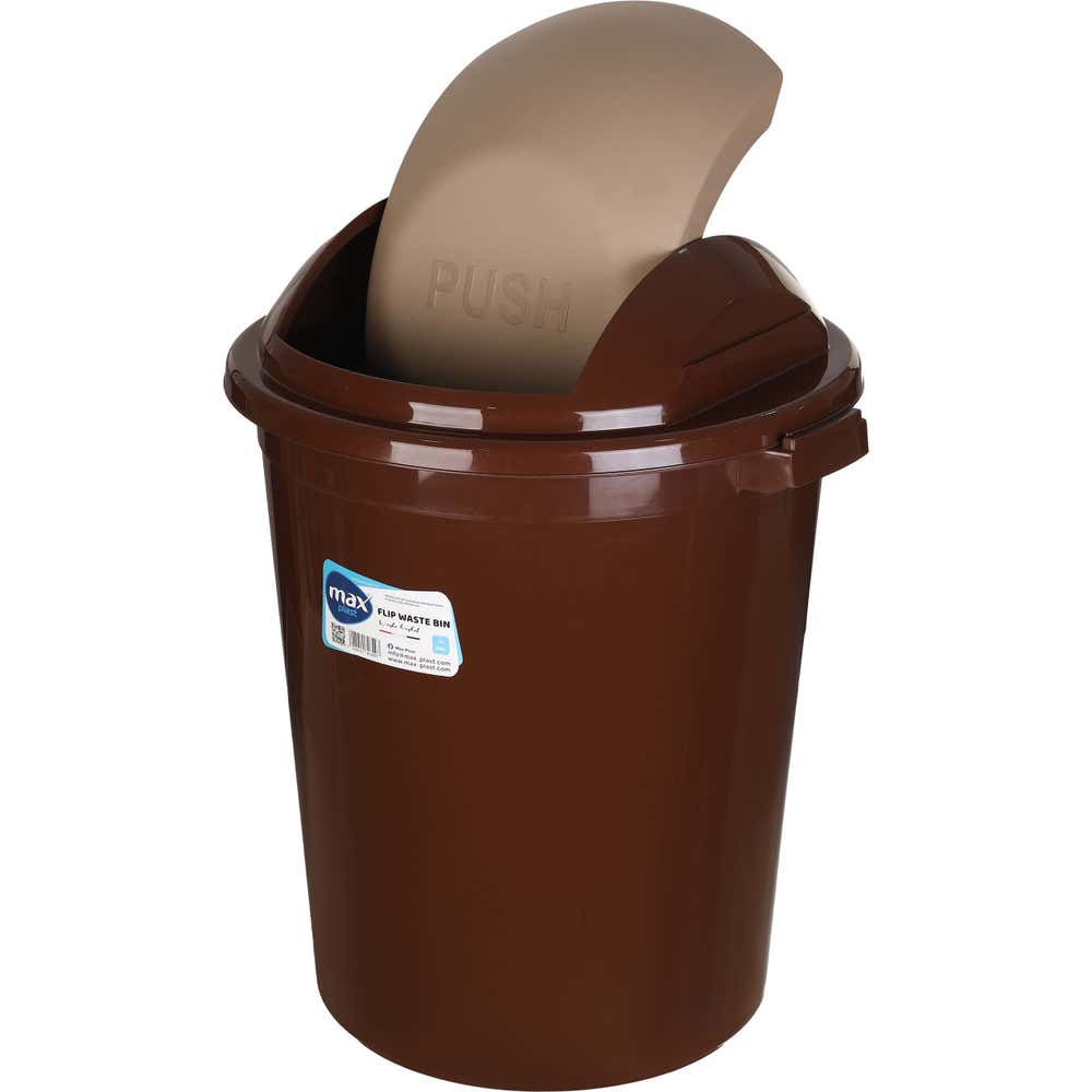 Max Plast Plastic Trash Bin With Removable Lid, 50 Liter - Brown