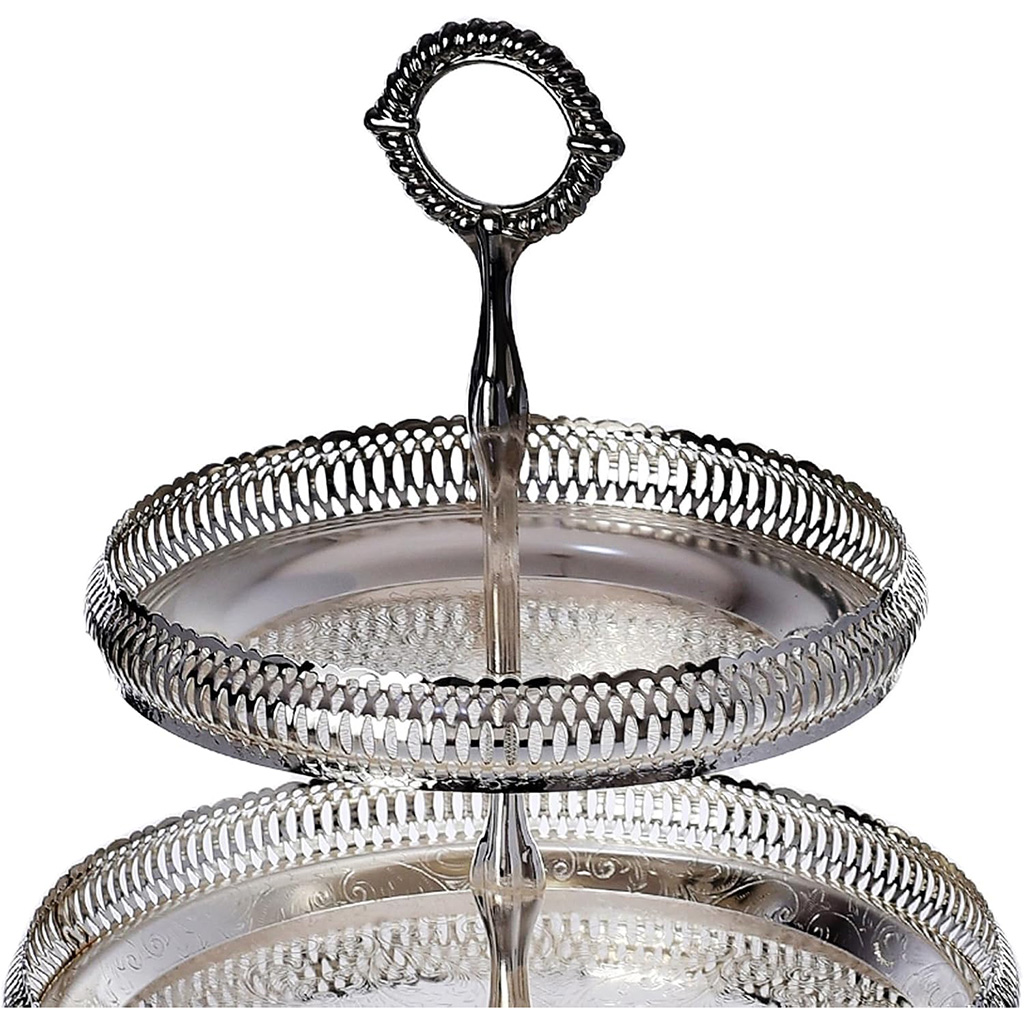 Queen Anne Silver Plated 3 Tier Cake Galleried Stand, 1 Piece - Silver